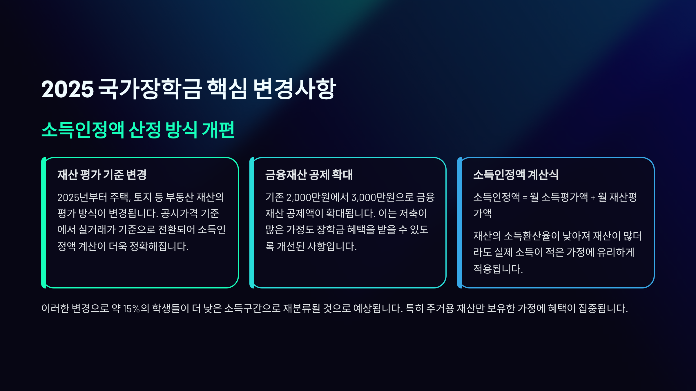 1. 2025 국가장학금 핵심 변경사항: 소득인정액 산정 방식 개편 ✅