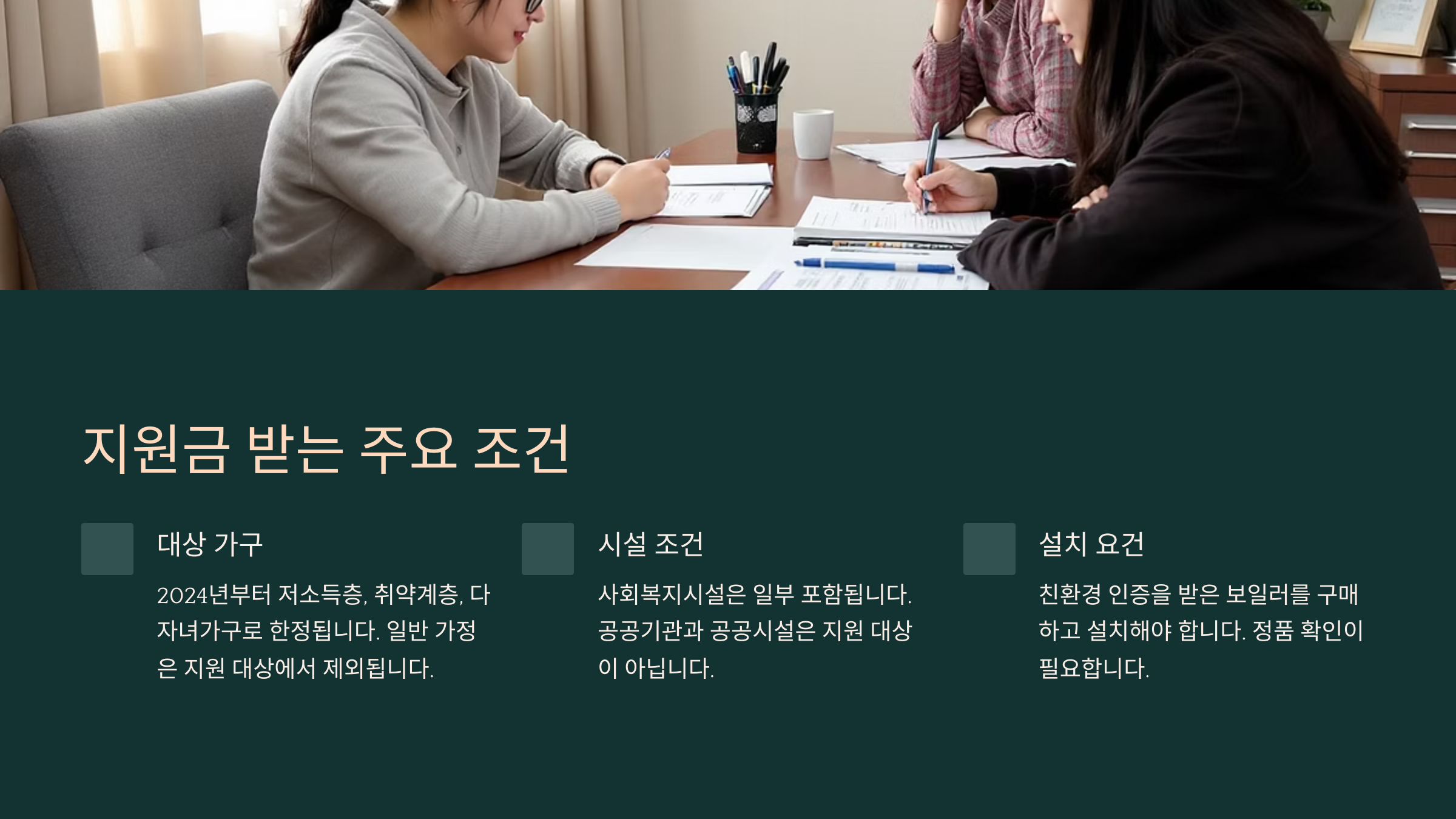 보일러 교체 지원금을 받기 위해서는 몇 가지 조건을 충족해야 합니다. 우선 지원 대상자 측면에서 살펴보면 다음과 같은 조건이 있습니다: