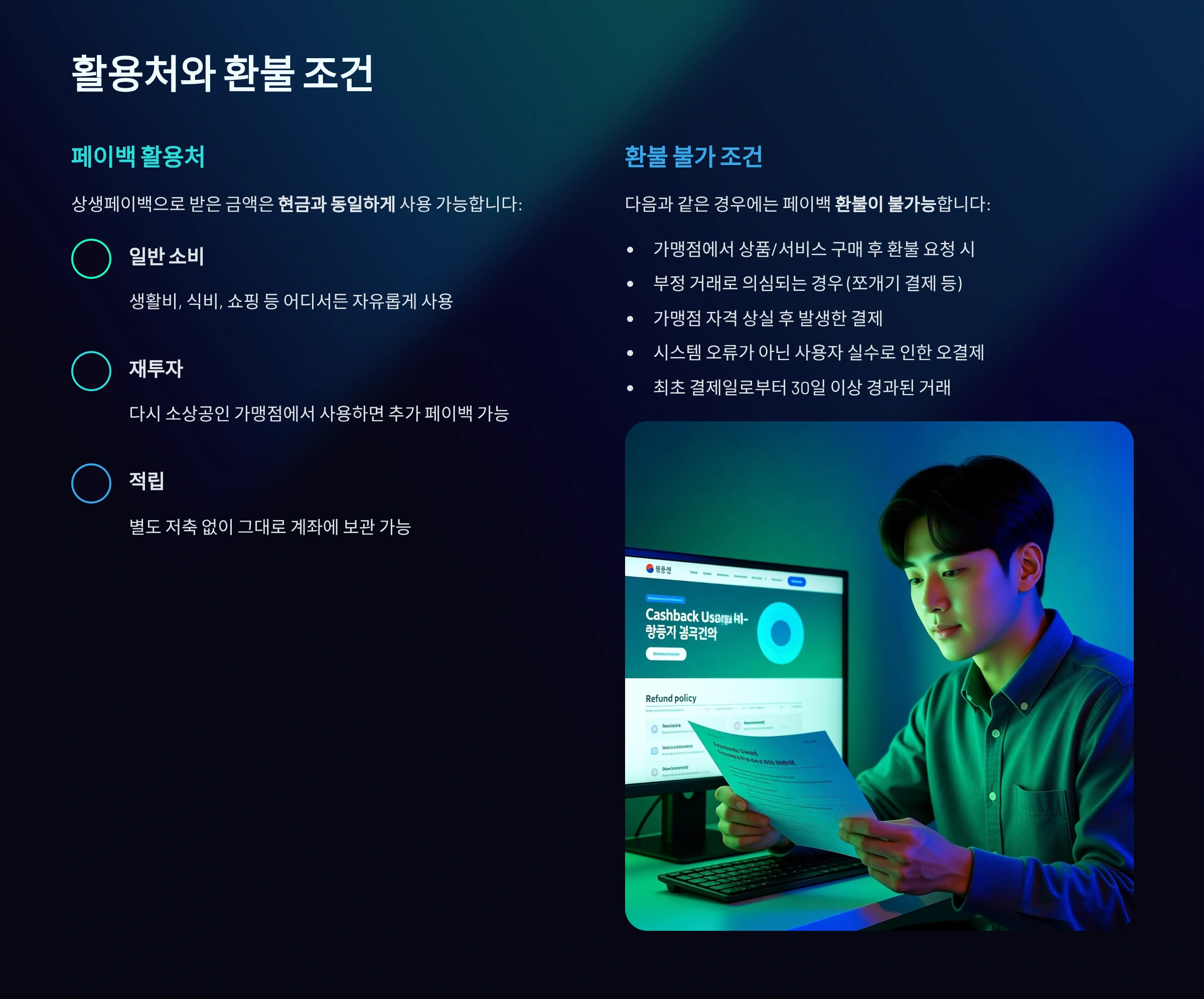 | 환불 불가 조건 | 허위 신청, 카드 사용 취소, 기준 미달 시 |