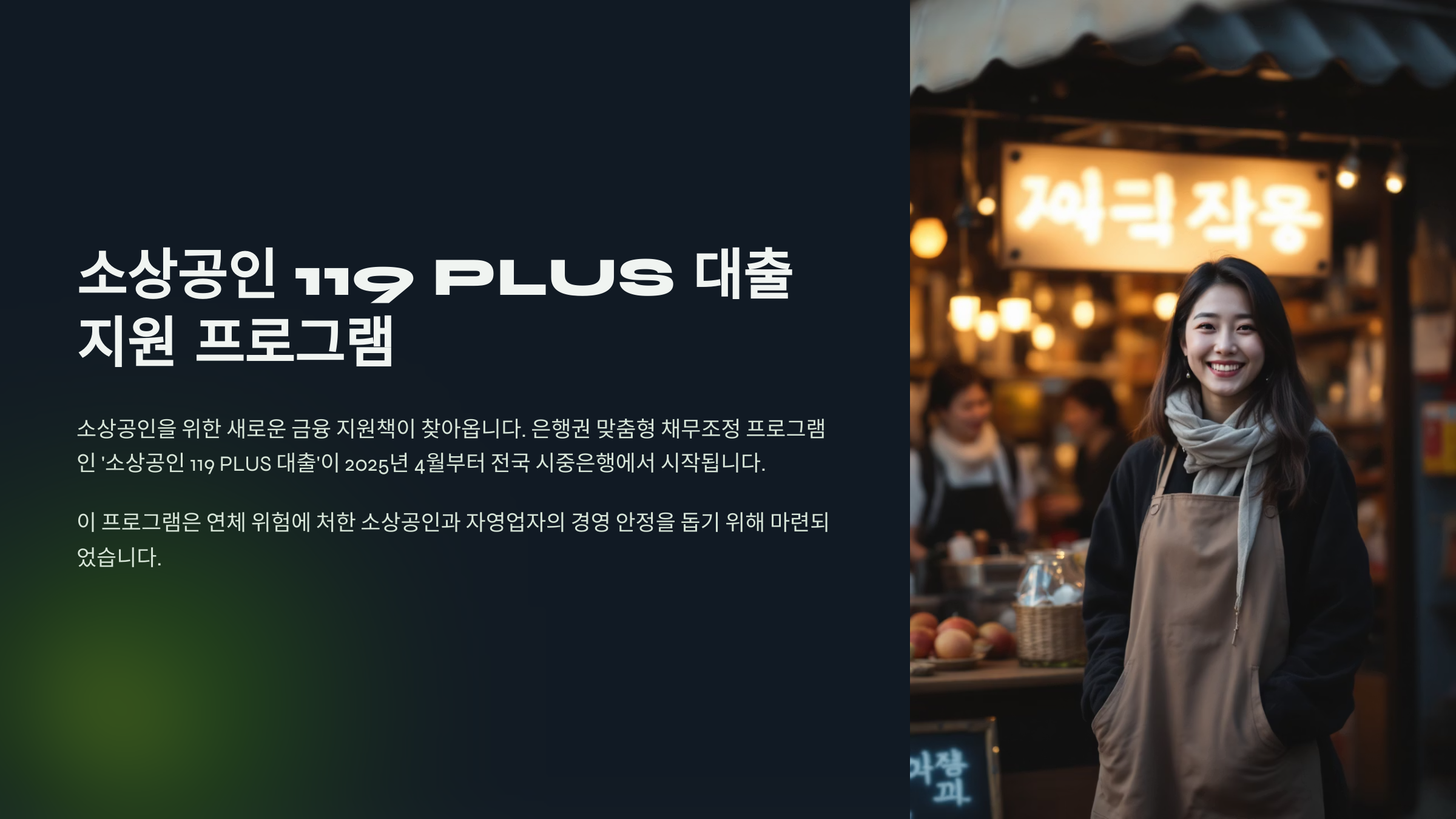 소상공인 119 PLUS 대출 프로그램은 소상공인의 사업 지속을 위해 금리 감면과 상환 조건 완화를 동시에 제공합니다. 이 프로그램을 통해 약 25만 명의 소상공인이 14조 원 규모의 대출에 대한 이자 부담을 줄일 수 있을 것으로 예상됩니다.