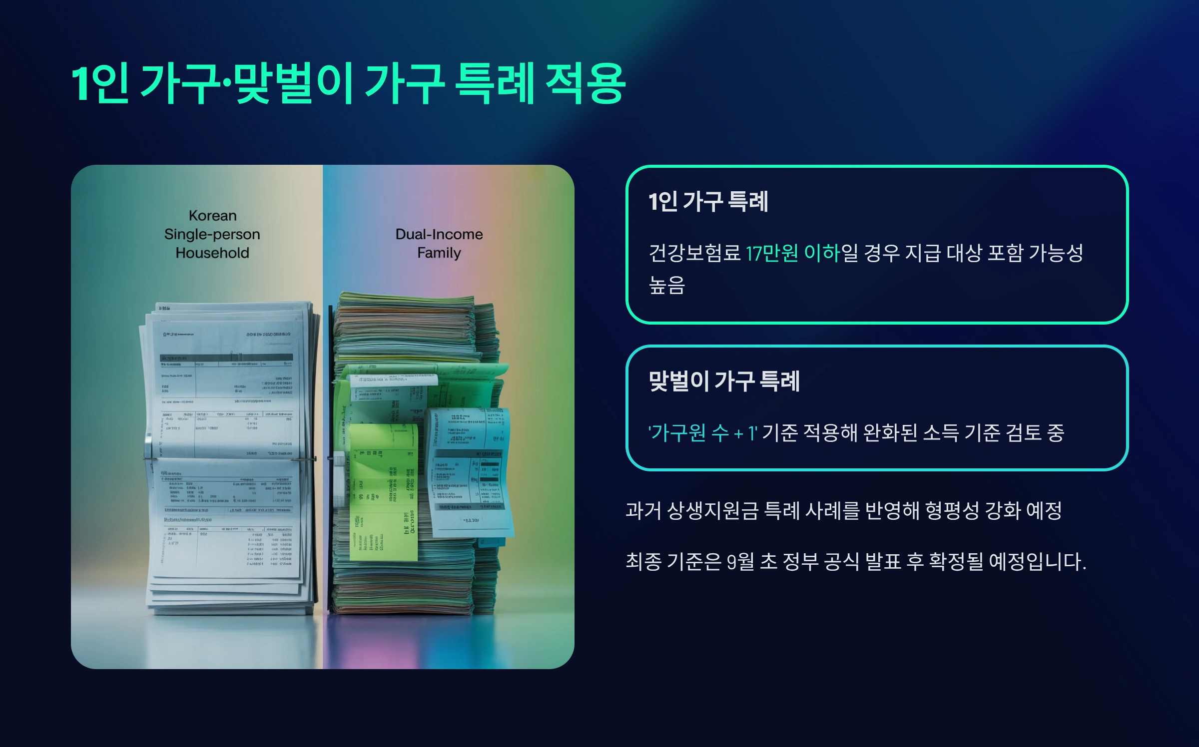 특히, 이번에는 1인 가구나 맞벌이 가구의 특성을 고려한 보정 특례 조항이 마련될 예정이어서, 지난 지원금 지급 때 제기되었던 역차별 논란을 해소할 것으로 기대됩니다.