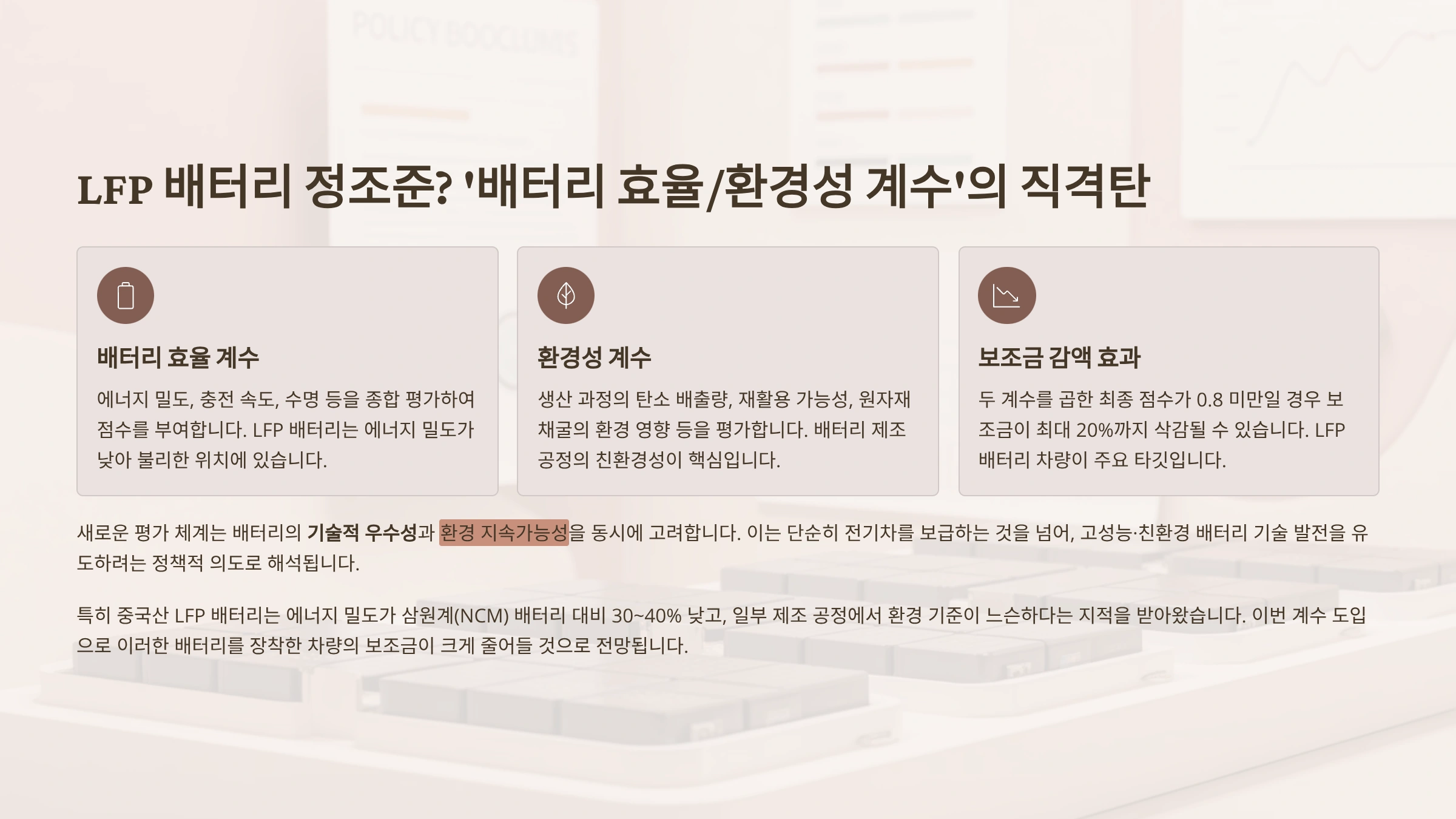 2. LFP 배터리 정조준? '배터리 효율/환경성 계수'의 직격탄 🔋